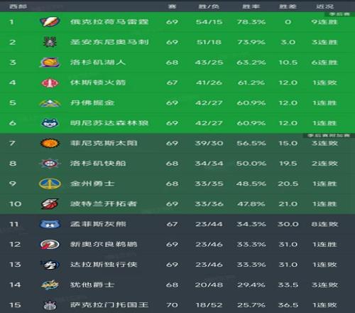 NBA西部最新积分榜:雷霆9连胜,马刺第2,36名差1.5个胜场