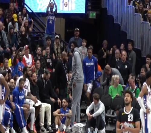 体育播报3月18日宣 76人客场挑战掘金,据记者Tony Jones报道,恩比德下半场出现在场边,被丹佛主场球迷狂嘘。